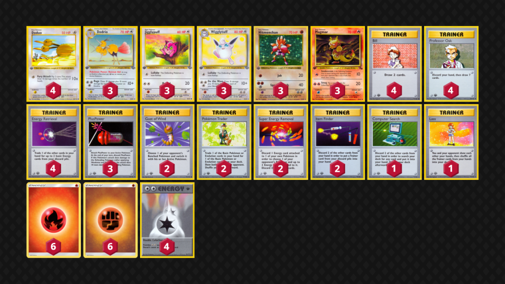 While the deck was originally designed and touted as competitive during the ‘99 era, the ceiling/floor disparity has caused the deck to fall out of favor with the hyper-competitive community. So long as the opponent has high damage attackers that don’t resist Fighting, you’re in a good place. Anything else is, well… not great, since the deck lacks reliably high damage output once Hitmonchan is neutralized and/or Clefable has nothing good to copy.
